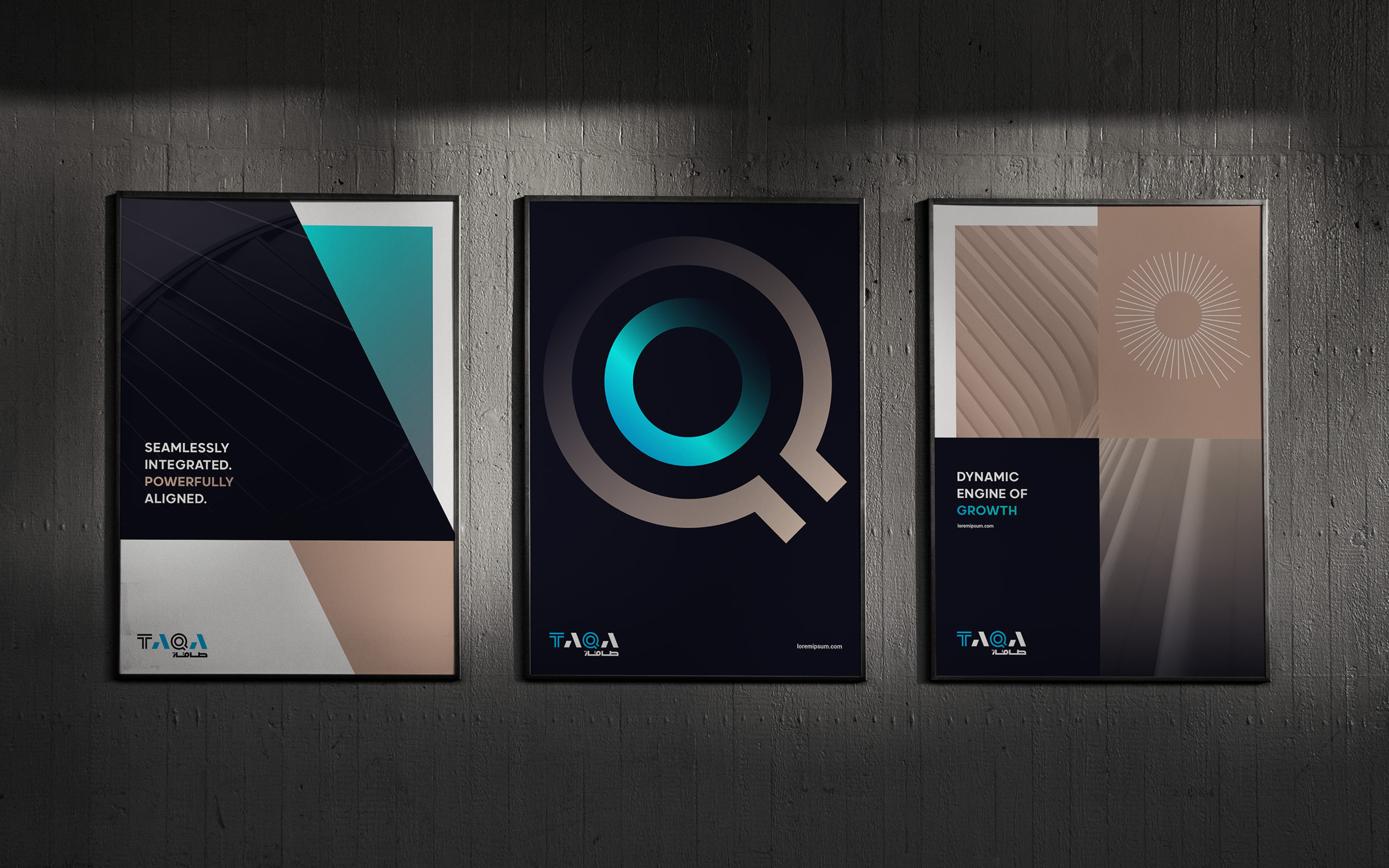 We derived TAQA’s monogram with a simple TQ, defining an instantly recognizable and impactful visual link, acting as a core brand signature.